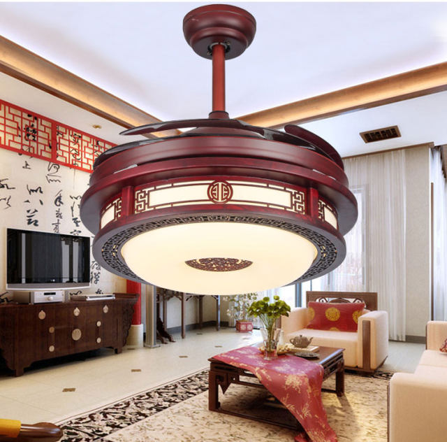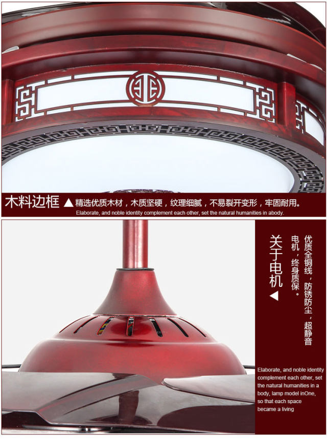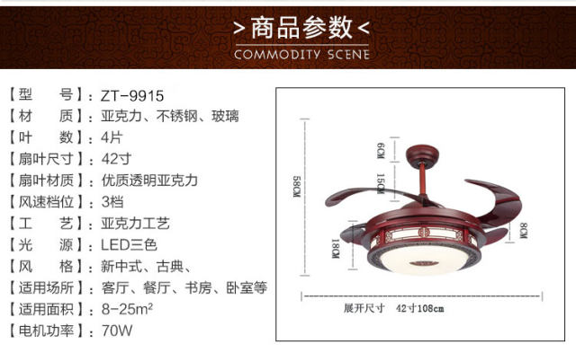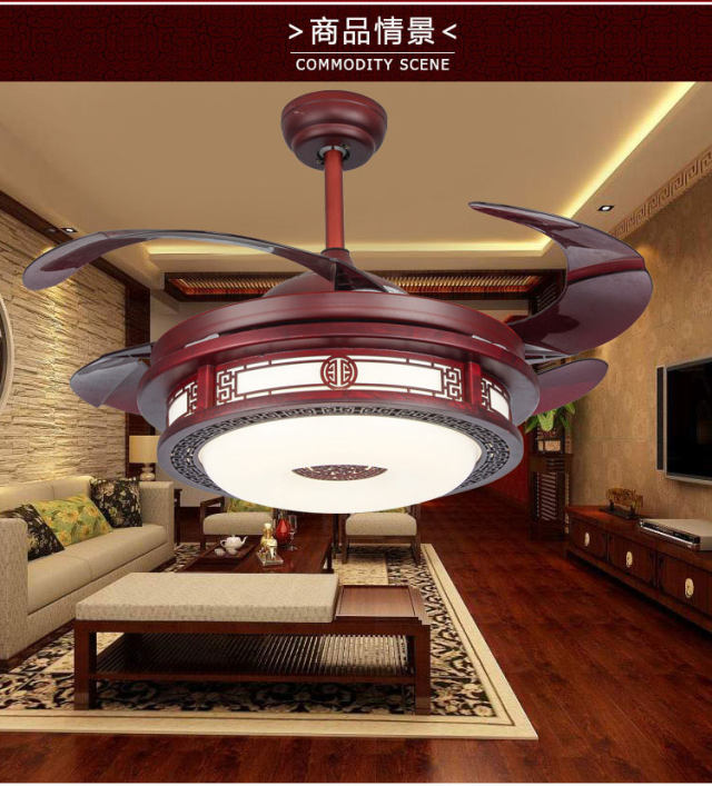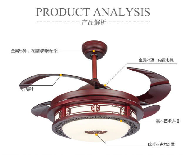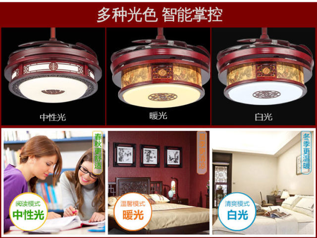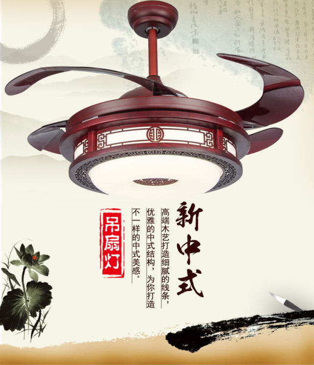 东方灯饰ZT隐形中式吊扇灯LED风扇灯餐厅吊扇灯客厅家用风扇吊灯中式隐形扇9915