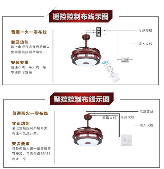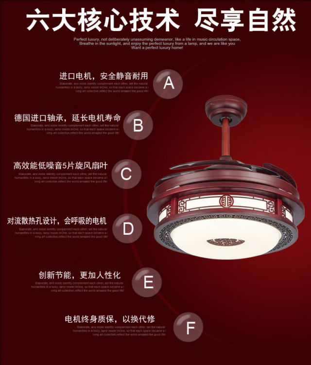 东方灯饰ZT隐形中式吊扇灯LED风扇灯餐厅吊扇灯9915