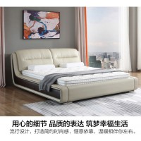 掌上明珠家居(M&Z)现代时尚皮艺床 头层真皮软床 卧室婚床 床头柜家具组合【线下同款】 1.8米真皮软床【B款咖啡色】 1800*2000