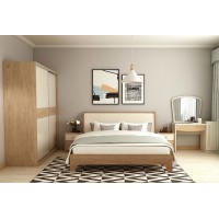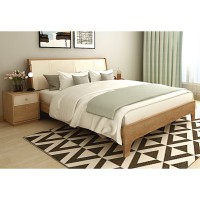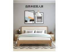 掌上明珠家居北欧双人床卧室简约床1.5/1.8米自然木纹床高箱储物可选63板木 床+1床头柜 1800*2000
