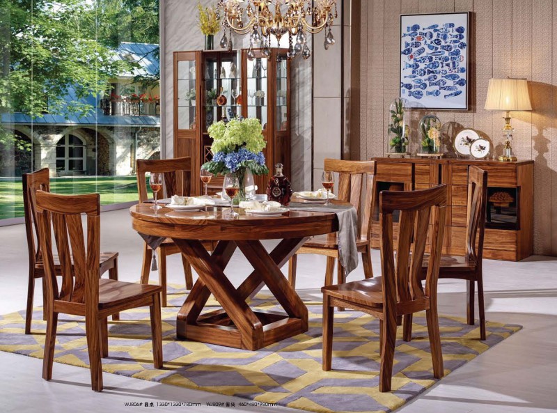乌金壹号  餐室整套系列,餐厅是人们就餐的场所,在对其装修时要特别注意。餐厅家具从款式色彩质地等方面要特别精心地选择。因为,餐厅家具的舒适与否对我们的食欲有很大的关系。餐厅家具的色彩配置,对人们的就餐心理影响很大。一是食物的色彩能影响人的食欲,二是餐厅家具的色彩也能影响人们就餐时的情绪。餐厅家具的色彩因个人爱好和性格不同而有较大差异。但总的说来,餐厅家具色彩宜以明朗轻快的色调为主,北京和君信美家具建议您最适合用的是橙色以及相同色相的姐妹色。这两种色彩都有刺激食欲的功效,它们不仅能给人以温馨感,而且能提高进餐者的兴致。整体色彩搭配时,还应注意地面色调直深,墙面可用中间色调,天花板色调则浅,以增加稳重感。