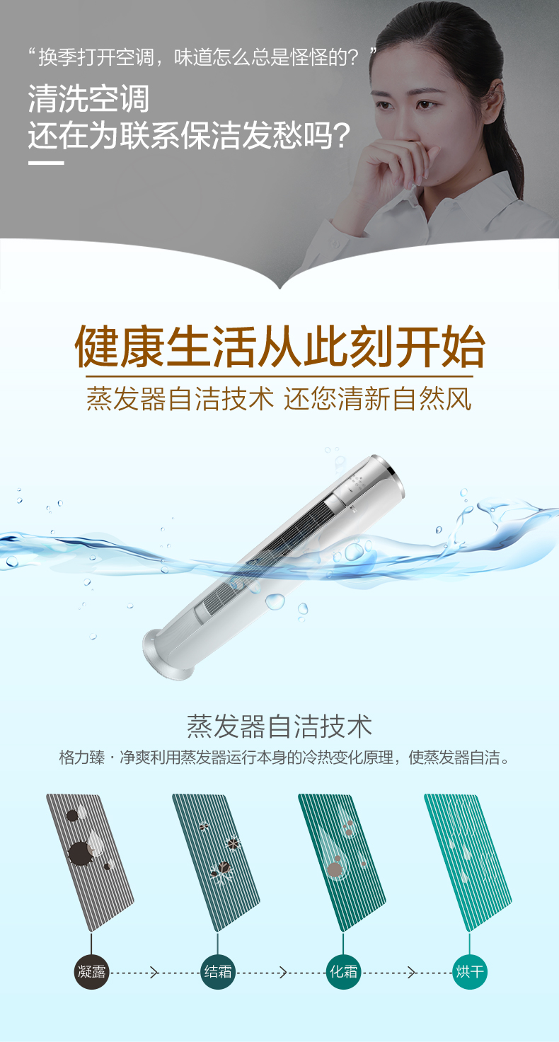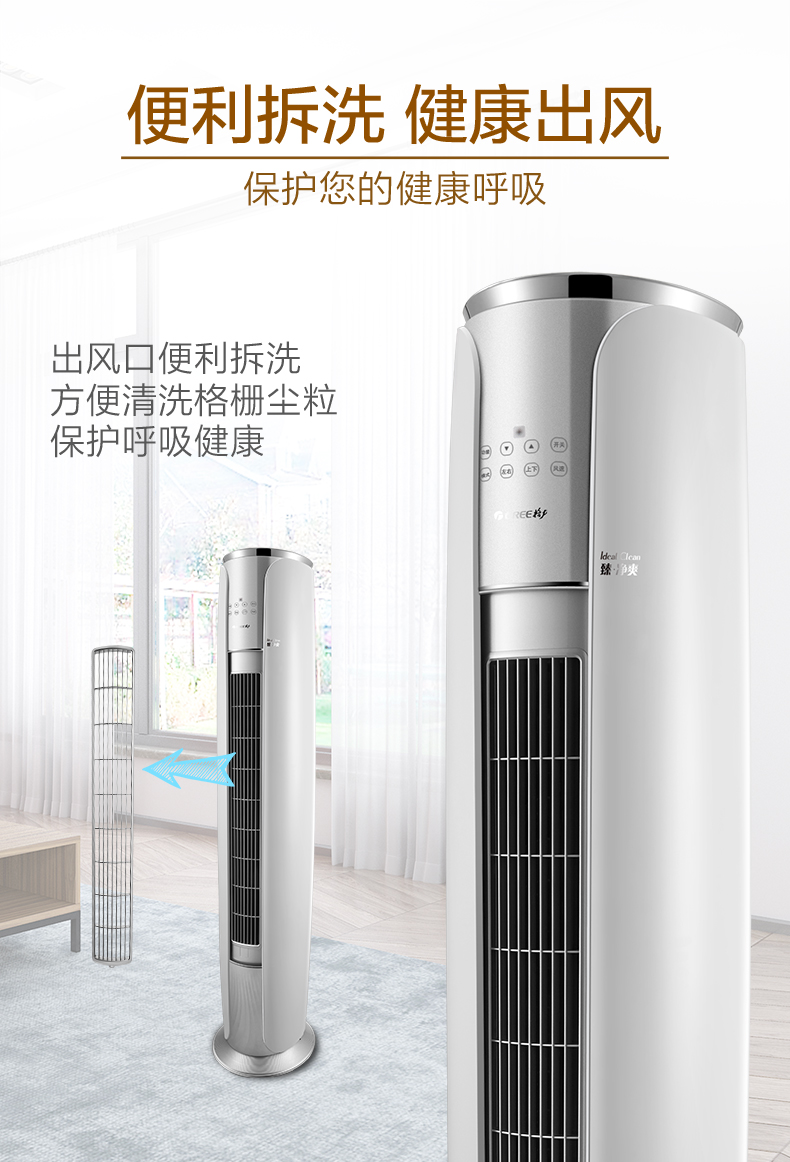 格力 2匹臻净爽二级能效变频冷暖智能静音舒适立式客厅圆柱空调柜机KFR-50LW/NhIbB2W