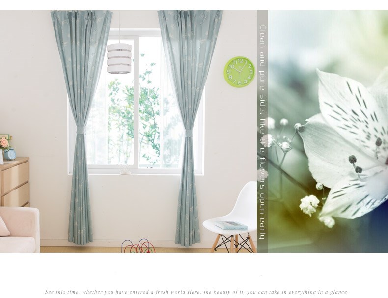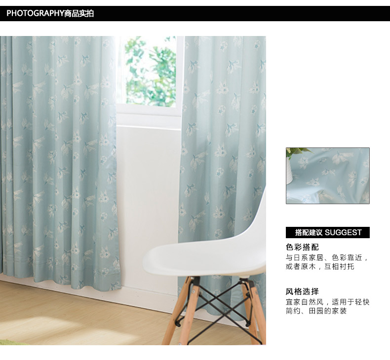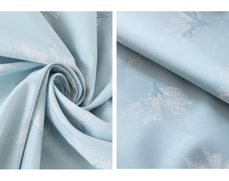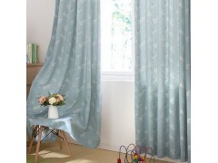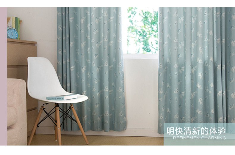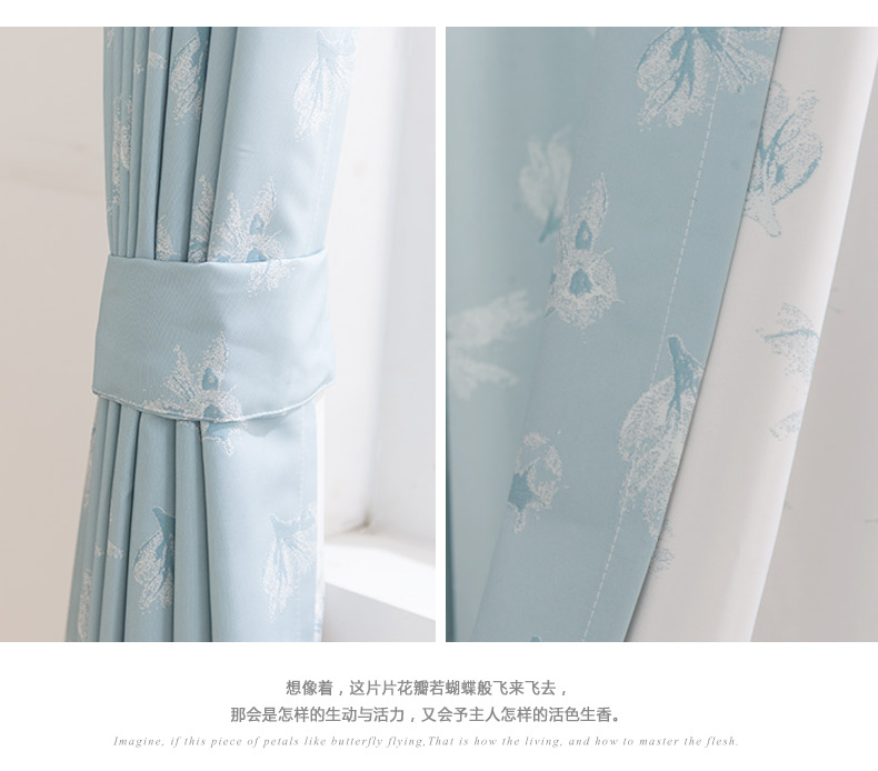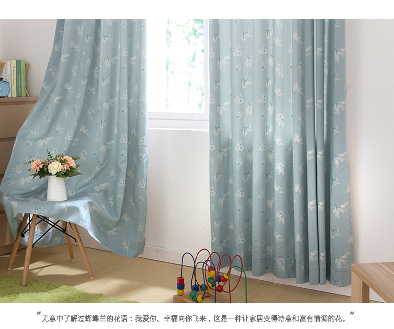 易可纺提花窗帘浅蓝色田园客厅卧室儿童房窗帘成品定制蝴蝶兰