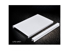 U扣一型天花是指U扣间隔扣在专用龙骨上,嵌条镶入其中,一宽一窄,线条分明,颜色组合突出个性,表面覆膜,长久不褪色。