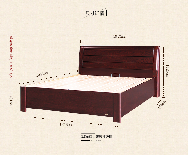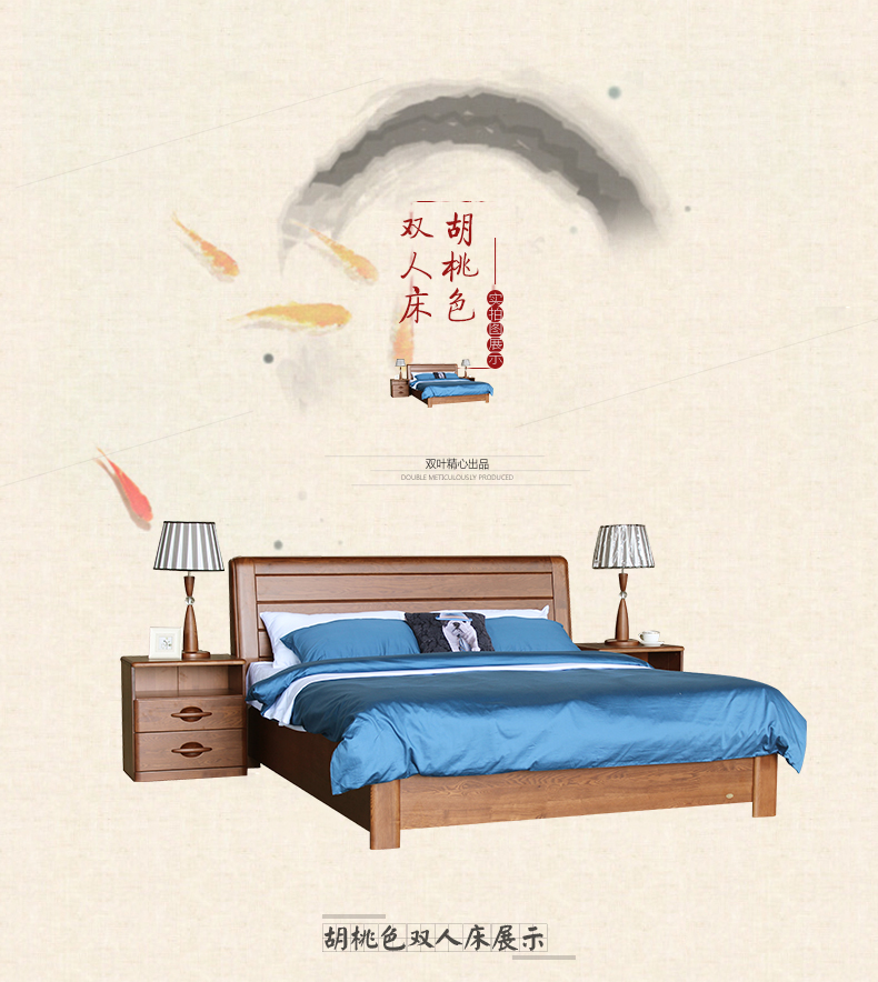 双叶家具实木床 实木水曲柳双人床 现代中式卧室1.5米1.8米大床